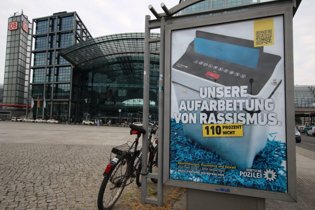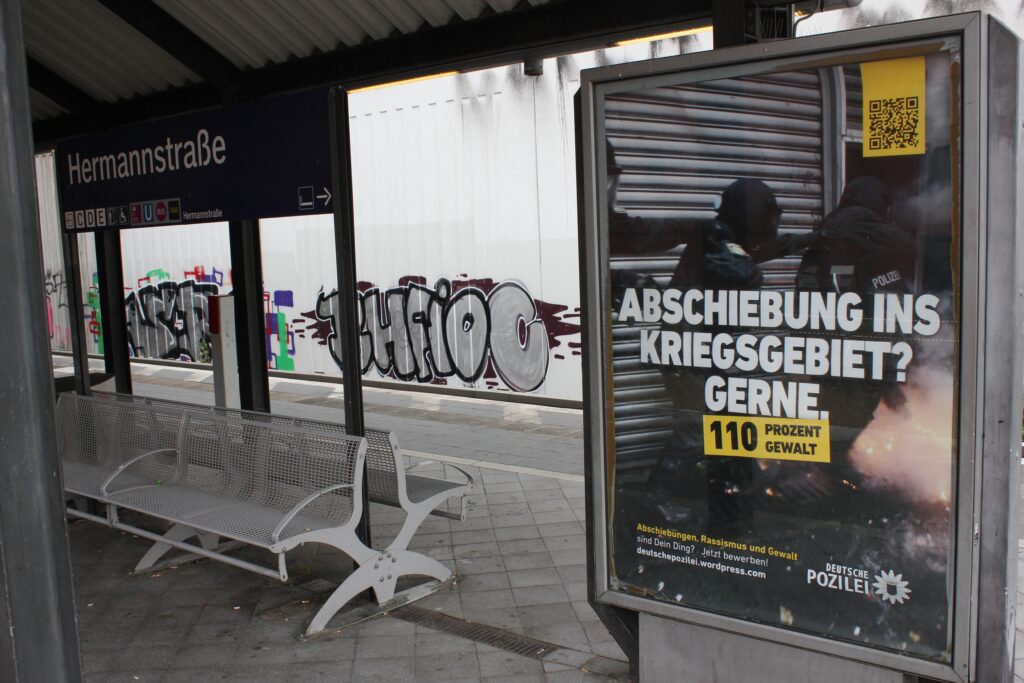 Im Juni 2023 fand die Innenminister*innenkonferenz in Berlin statt. Das ist ein guter Anlass, um der Öffentlichkeit zu zeigen, dass das ein Treffen von Abschiebeminister*innen ist. Die Kommunikationsguerilla-Gruppe „Gegen deutschnationale Polizeigewalt (GdP) organisierte deshalb die bis dahin größte Adbusting-Aktion seit Jahren in Berlin. Fast rekordverdächtige 120 Werbevitrinen in U- und S-Bahn-Station kaperte die Gruppe damals.